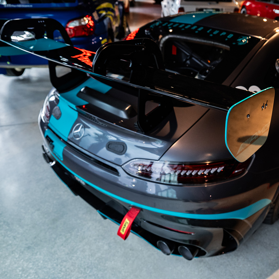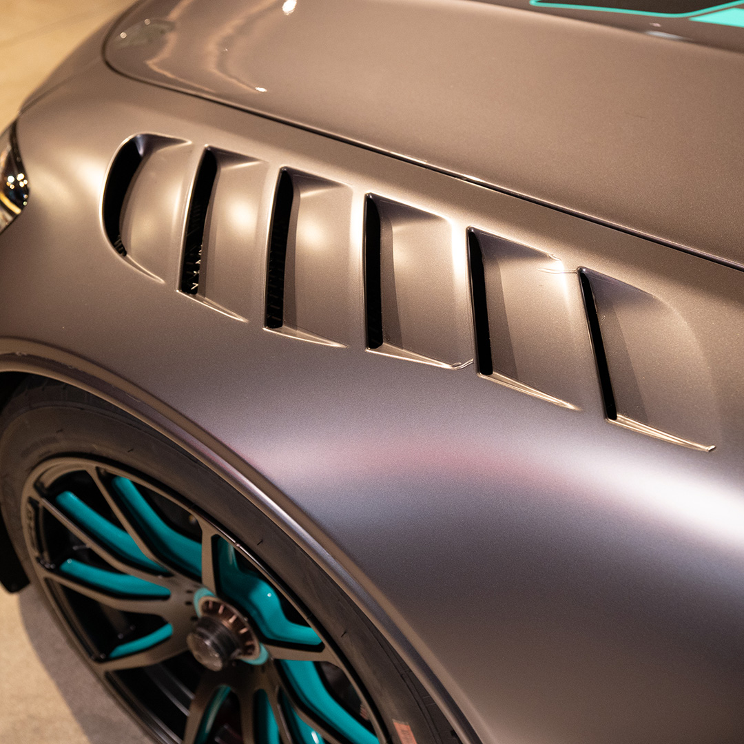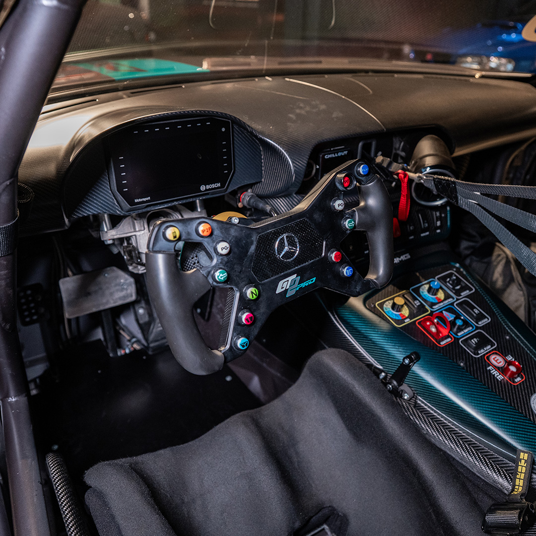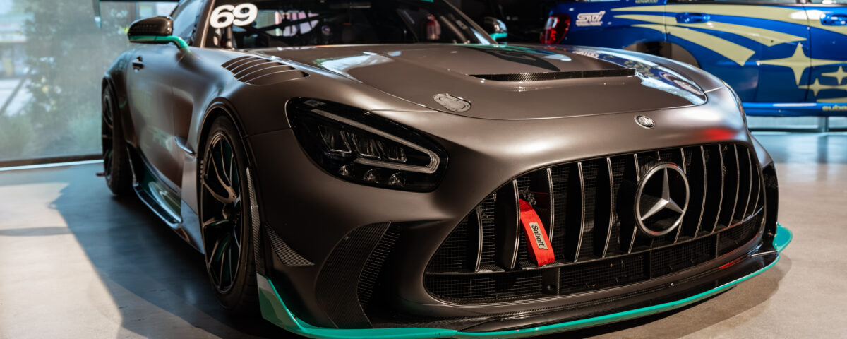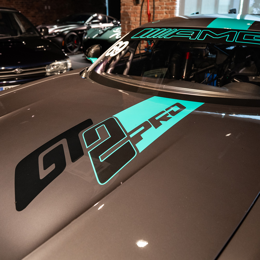 Finished in a striking matte grey full paint scheme with distinctive carbon details and two-tone 18-inch AMG alloy wheels, the GT2 Pro’s design balances form and function, enhancing downforce, stability, and visual presence on the circuit.