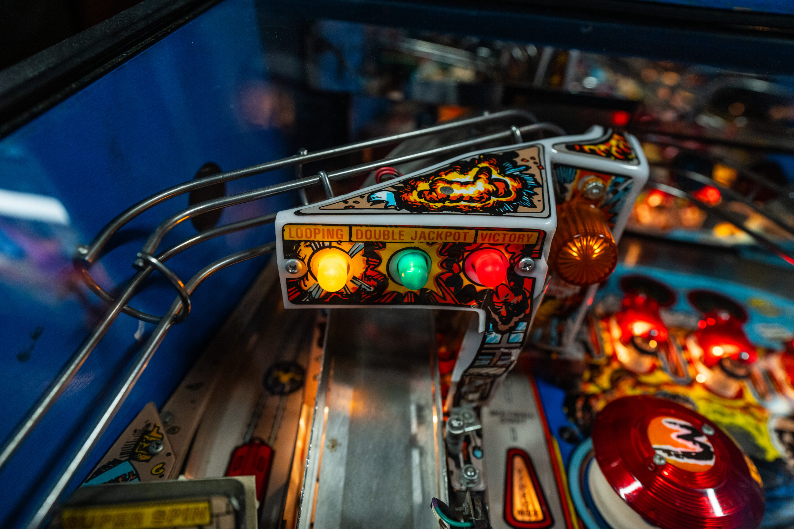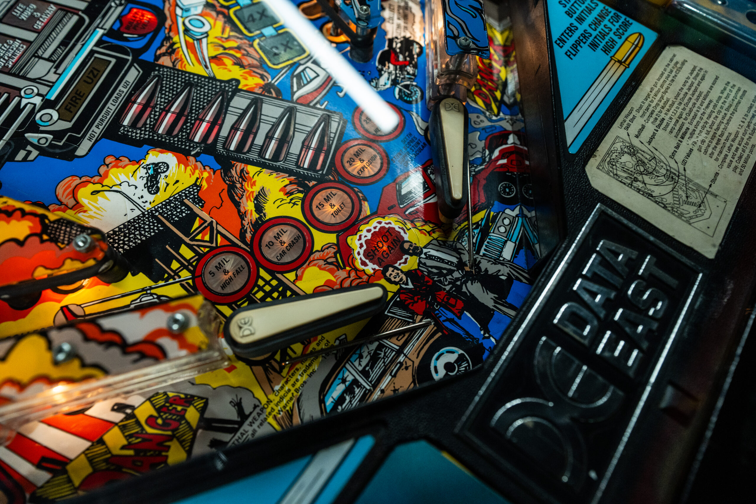 A true ’90s action icon, “Lethal Weapon 3” brings the explosive energy of the movie franchise to the arcade world. Designed by Joe Kaminkow and Ed Cebula, this preserved example features the famous gun-handle launcher, fast-paced gameplay, and fully intact early-’90s sound and light effects.